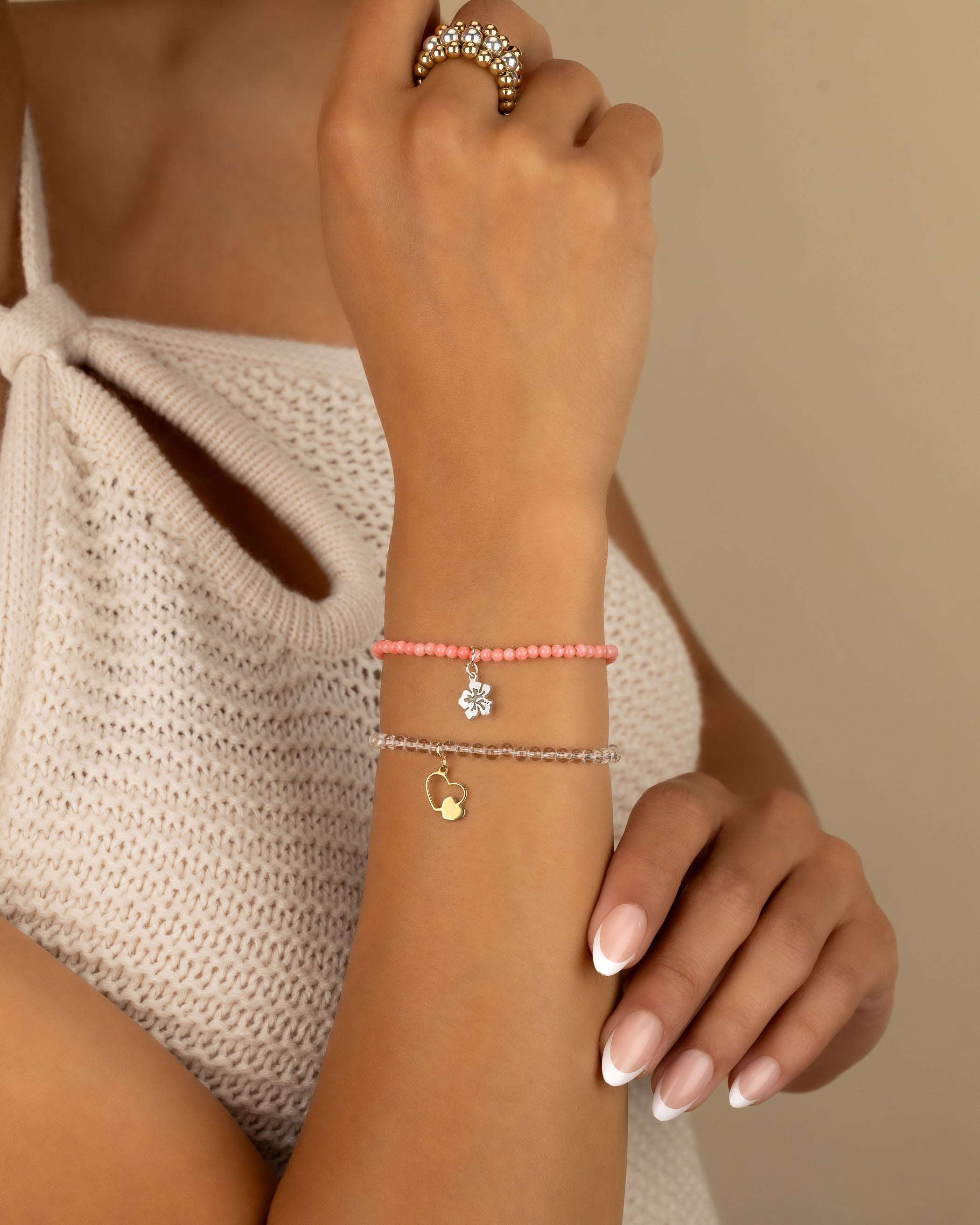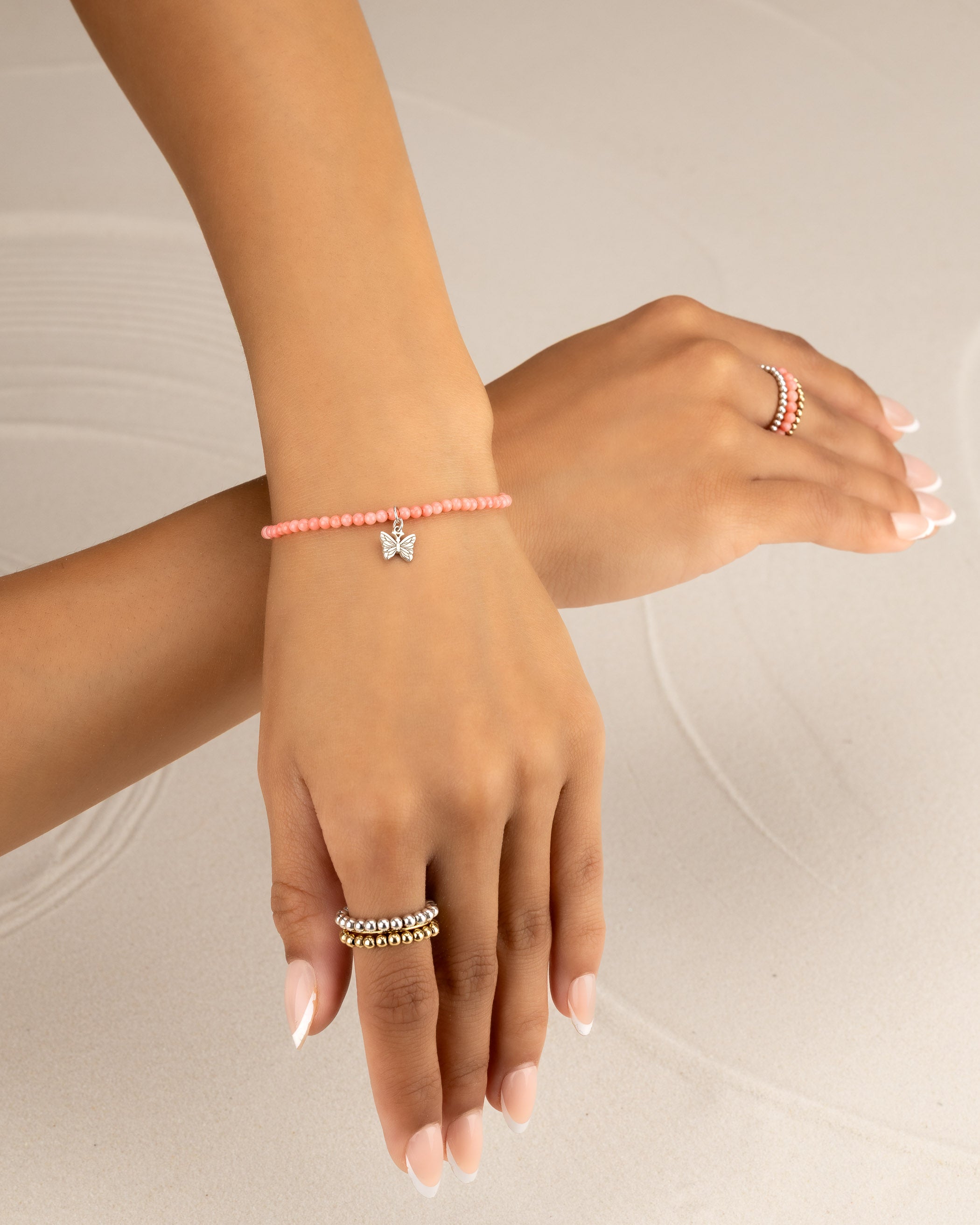 Coral Beaded Charm Bracelet
