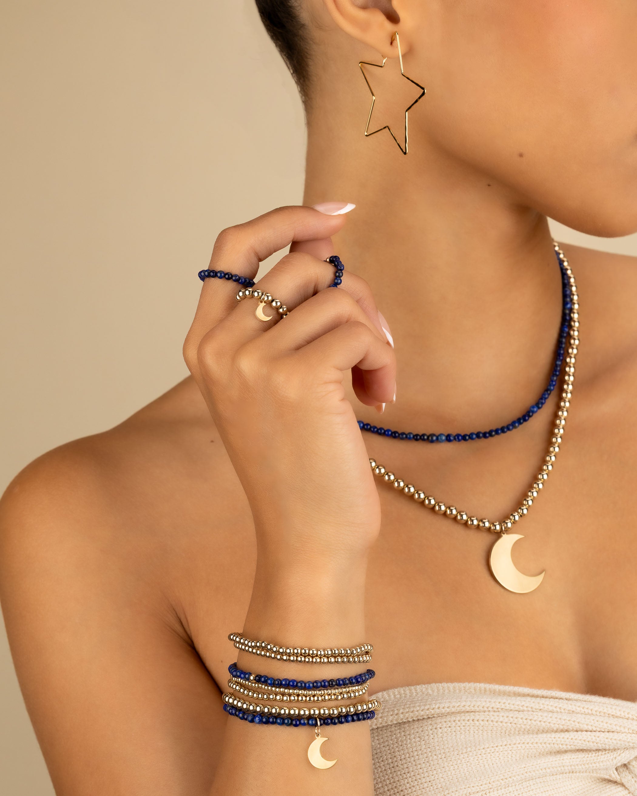 Gold Moon Charm Beaded Ring