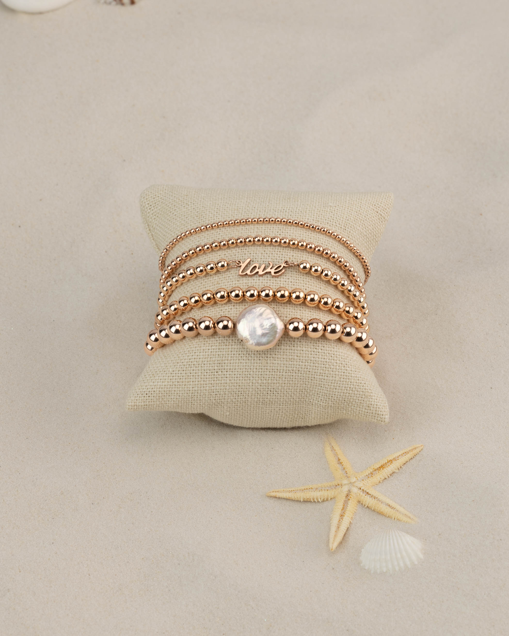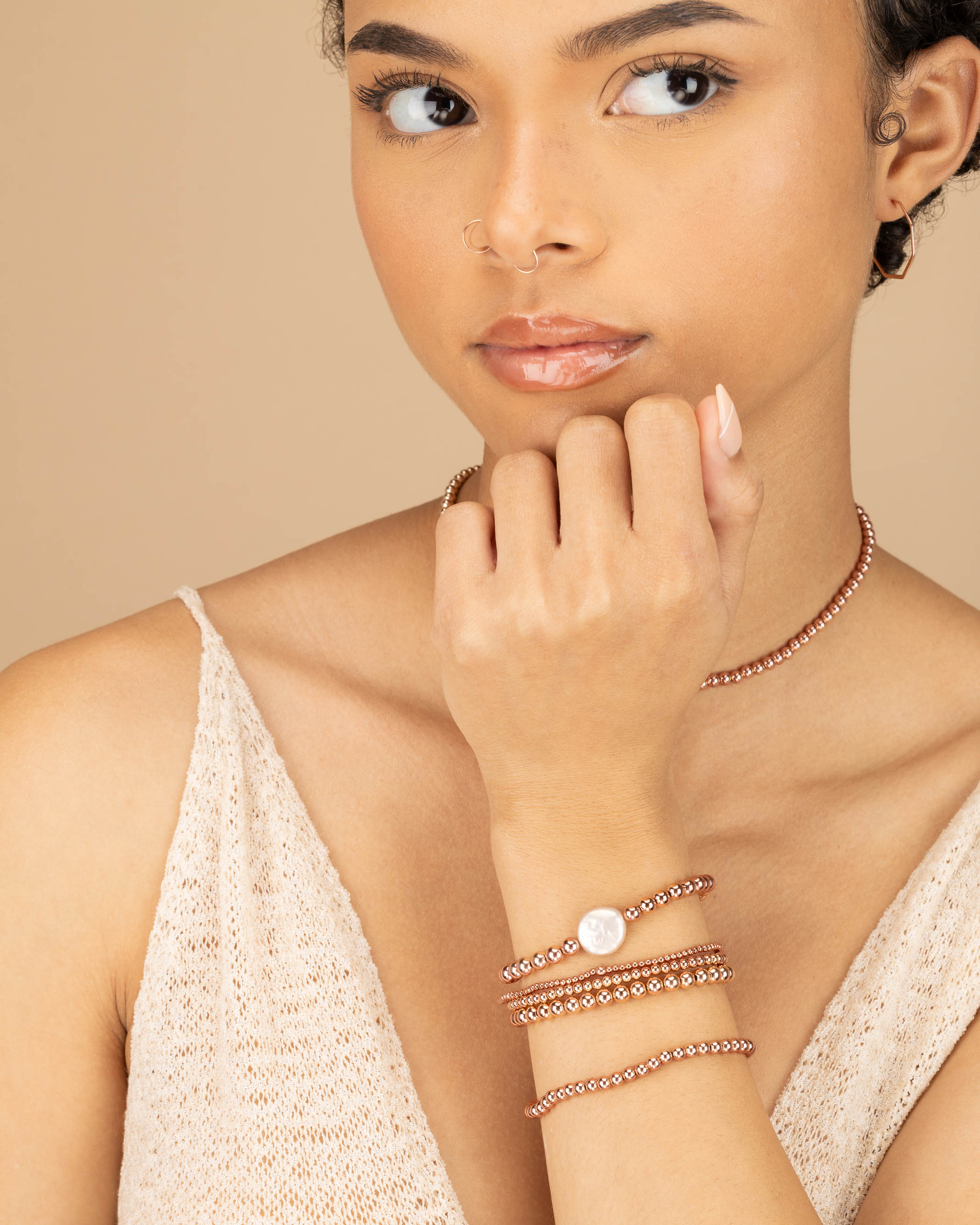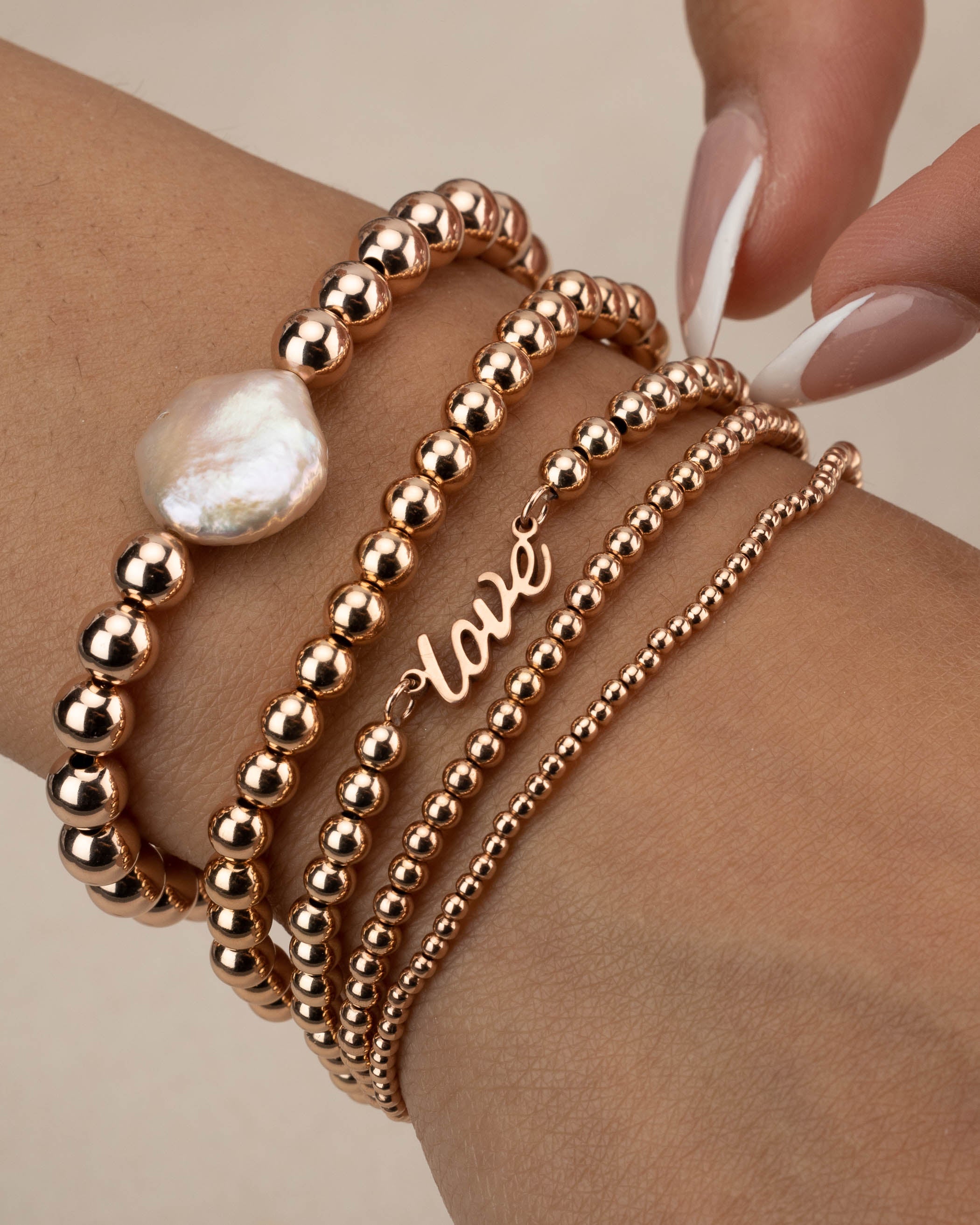 Rose Gold Coin Pearl Beaded Bracelet