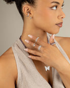 Silver Butterfly Charm Beaded Ring