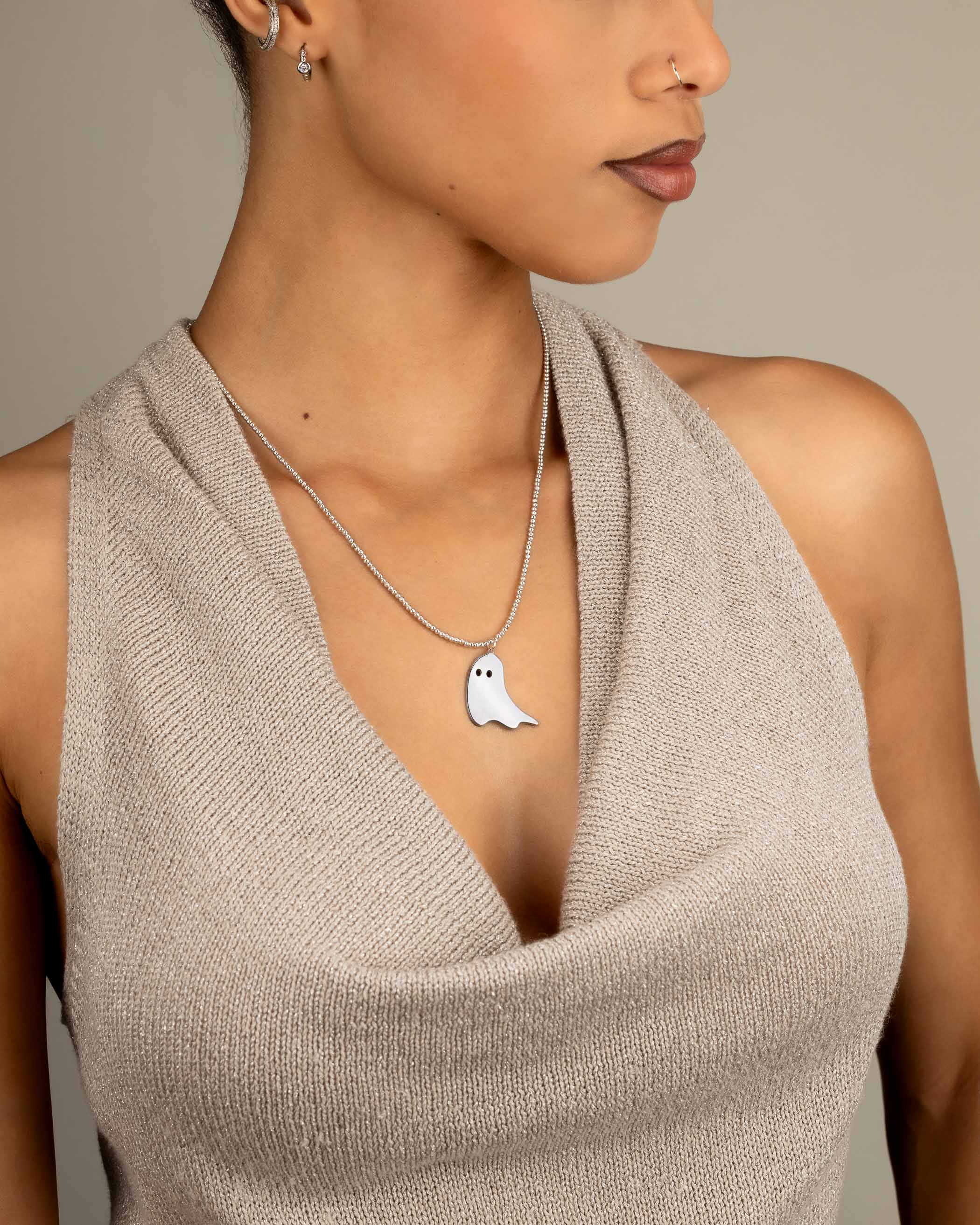 Silver Ghost Pendant Beaded Necklace
